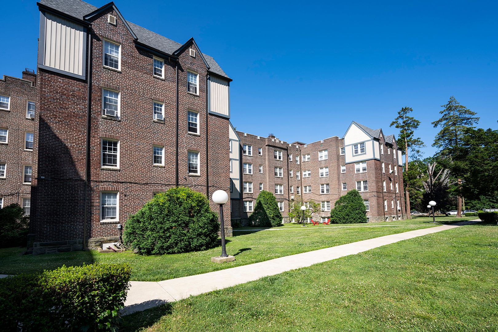 A walk around West Mount Airy reveals a neighborhood of lush landscaping, huge old trees, and fascinating architecture, including Victorian, Greek and Gothic Revival - a stellar example of which is Upsal Gardens Apartments. Set on a terraced site, the brick and stone walls are distinguished by bays, turned gables, battlements, half-timbers, corbels, leaded glass and pointed arches. Today, all but a handful of the 146 apartments at Upsal Gardens have different floor plans. Units range from studios to three-bedroom/three-bath apartments.